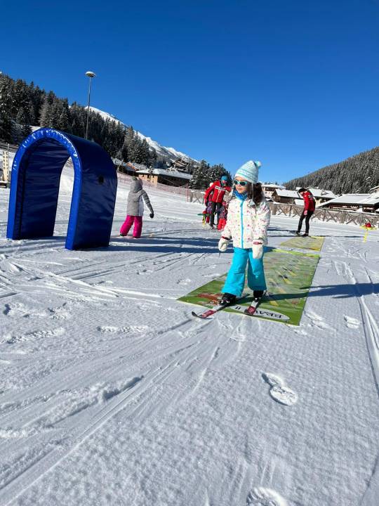 I più piccoli e i principianti potranno muovere i primi passi in sicurezza nel campo scuola, accuratamente preparato dai maestri di sci, attrezzato con ausili didattici colorati e divertenti.